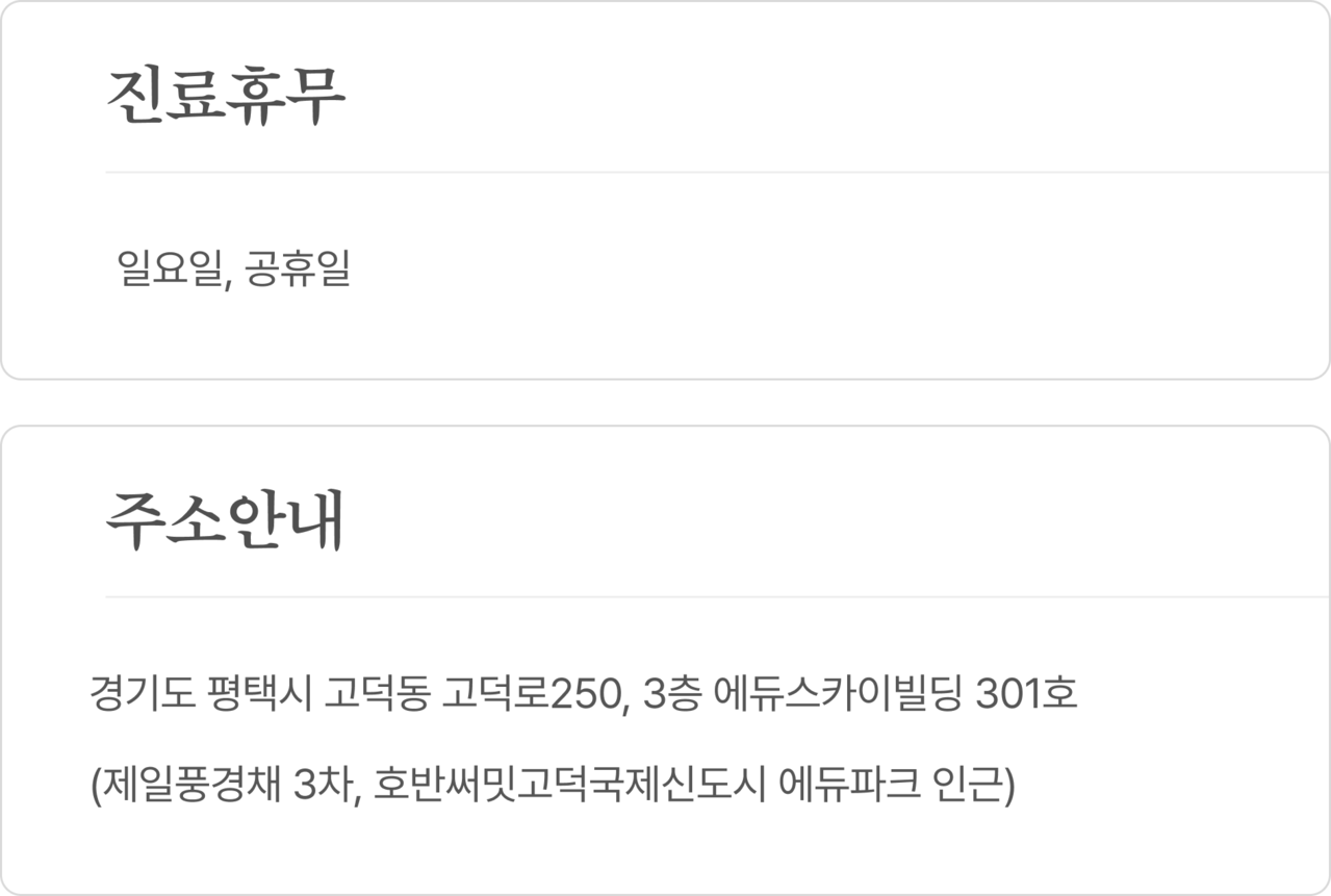 주소 : 평택시 고덕동 고덕로250 에듀스카이빌딩 301호