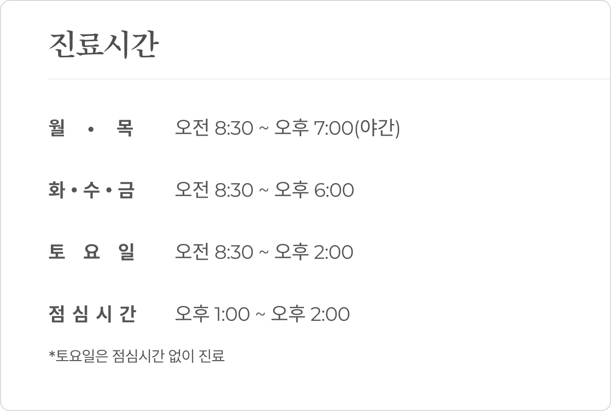 타임내과는 바쁜 직장인들을 위해월/목 오후 7시까지 야간진료를 진행하고 있습니다.