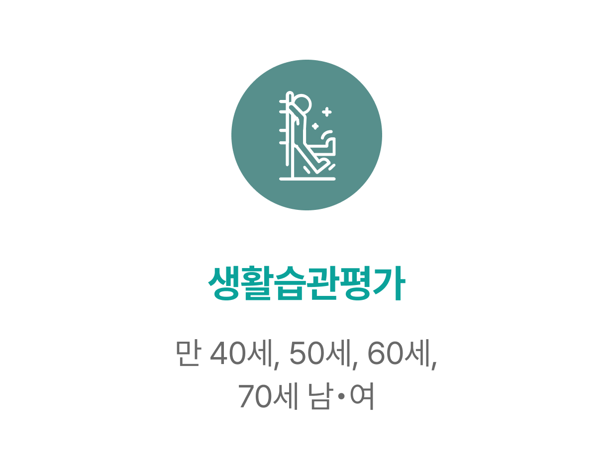 정신건강검사 (우울증) : 만 20세, 30세, 40세, 50세, 60세, 70세 남 ∙ 여