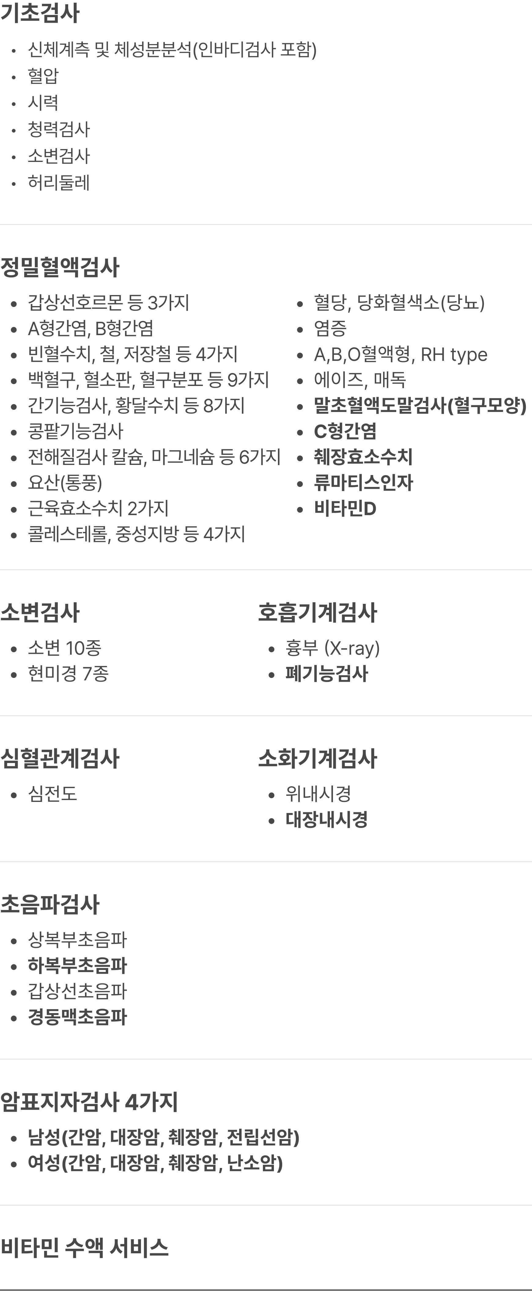 2030을 위한 프로그램으로 대학생, 사회초년생부터 기업 인사를 준비중인 분들의 정확한 내 몸 건강확인이 필요한 시간입니다.